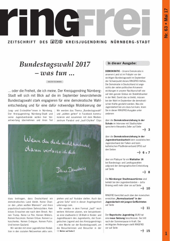 - Ring Frei Nr. 63, Mai 2017 mit dem Schwerpunktthema "Bundestagswahl"